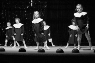 Ik heb (maar) twee zonen (woordbreuk?) en nu staat mijn klein-dochter daar op het podium nonnetje te wezen. Er wordt ingetogen gestapt en gedanst op muziek van Soeur Sourire. Ik merk wel dat de nonnetjes korter en meer flatterend gerokt en gesokt zijn dan hun voorgangsters. Nonnetjes uit de vorige eeuw stapten niet maar zweefden, de rokken gemillimeterd tot de grond, door de klooster-gangen.