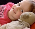 Maité nestelt zich op/in de knalrode Colapoef en verdiept zich in een spelletje Solitaire. Na een poosje ►