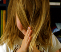 Maité nestelt zich op/in de knalrode Colapoef en verdiept zich in een spelletje Solitaire. Na een poosje ►